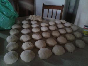 This bread brings me a lot of good memories, sitting outside with my grandmother, waiting for the man selling hot Johnny Cakes for $0.50 each. Let me tell you, this bread is delicious . The recipe says to bake it in the oven , but if you have a chance to bake it slowly in a fire pit covered inside a deep pot hhmmmm, that is something else!Here a some pictures below , to give you an idea:
